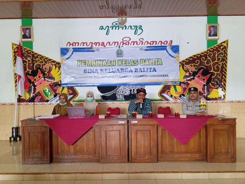 Adapun peserta yang dihadirkan adalah ibu-ibu warga Kalurahan Melikan yang memiliki balita, Lurah Melikan, Carik, Bhabinkamtibmas dan Kamituo selaku pelaksana kegiatan, dengan narasumber dari UPT Puskesmas Kapanewon Rongkop.